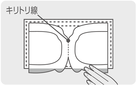 パッケージから出した「ハイパーブロックマスク」は、耳掛け部分がつながっているので、キリトリ線に沿って切り離します。このとき、マスクからはみ出した部分を持って切り離すと、口に接する部分にふれることなく衛生的に準備できます。