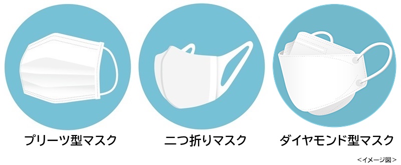 花粉対策に効果的な不織布マスクの形状は、大きく3つのタイプに分けられます。それぞれの特長を把握して、ご自身に合った着け心地、密着度のマスクを探してみてください。