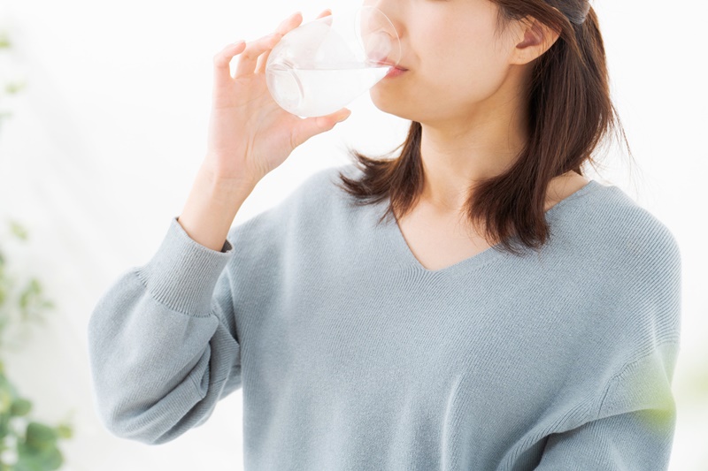 尿モレを警戒して、普段から飲み物を控えている人もいるのではないでしょうか。実は、これは逆効果。水分の摂取量が少ないと尿が濃くなり、膀胱が刺激されて尿意を強く感じるようになります。1日約1.5Lを目安に、しっかり水分補給しましょう。