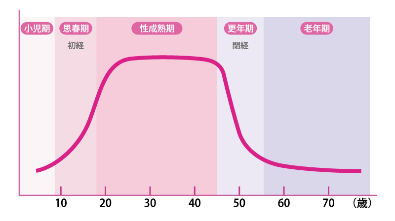 ■年齢別の女性ホルモン(エストロゲン)量の変化