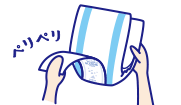 | 素材 | 表面材:ポリオレフィン系不織布 吸水材:綿状パルプ、高分子吸水材 吸収紙:ポリオレフィン系不織布 防水材:ポリオレフィン系フィルム 止着材:スチレン系合成樹脂 等 伸縮材:ポリウレタン 結合材:スチレン系合成樹脂 等 |