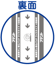 ※センターラインの矢印は、吸収体の狭い方を示しています。バックシートには商品名も入っています。
