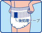 | 素材 | 表面材:ポリオレフィン系不織布 吸水材:綿状パルプ、吸収紙、高分子吸水材 防水材:ポリエチレンフィルム 止着材:ポリプロピレン 伸縮材:ポリウレタン 結合材:スチレン系エラストマー合成樹脂材 |