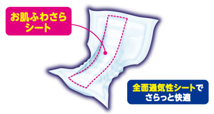 全面通気性シート採用。くり返し吸収しても表面はさらさら、ベタつきません。