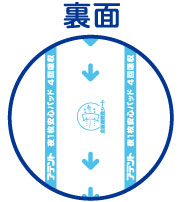 ※センターラインの矢印は、吸収体の狭い方を示しています。バックシートには商品名も入っています。