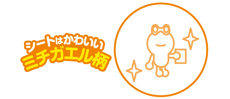 かわいいミチガエルのデザインシート採用。改良したエンボスシートにより汚れ落ち性能アップ。オレンジの香りがお掃除のときにさわやかに広がります。