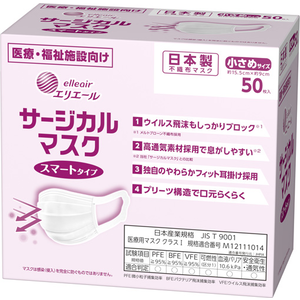 「elleair」マークがマスク本体の左下になる面を外側にして、着用してください。形状:プリーツタイプ(使いきりタイプ)