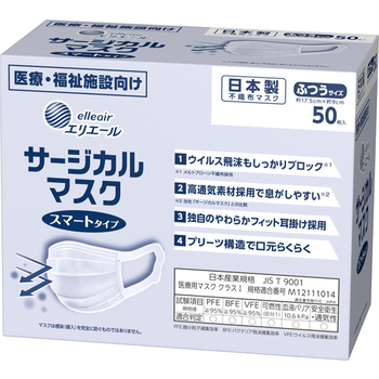 「elleair」マークがマスク本体の左下になる面を外側にして、着用してください。形状:プリーツタイプ(使いきりタイプ)