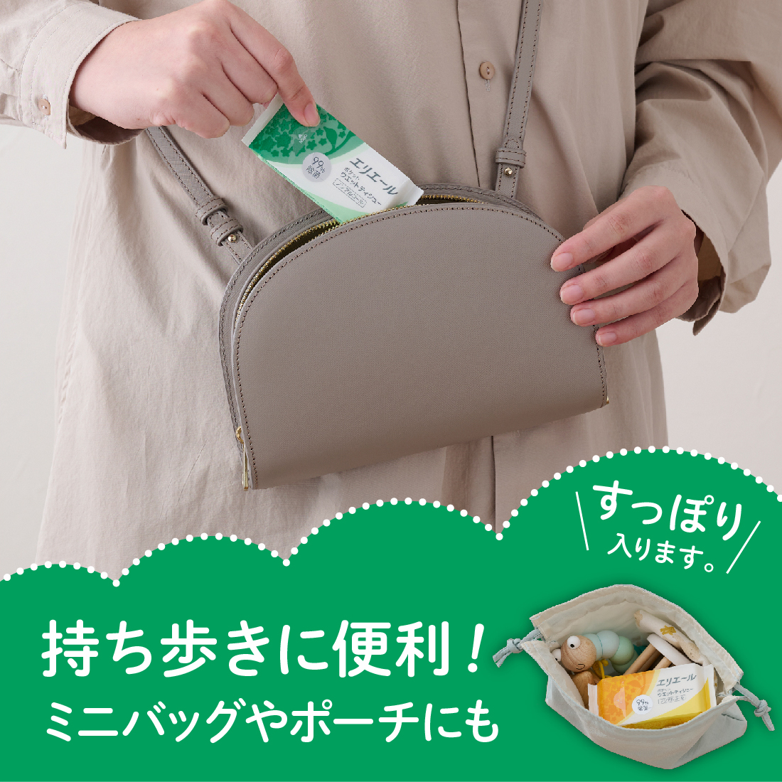 ミニバッグやポーチにもすっぽり入ります!