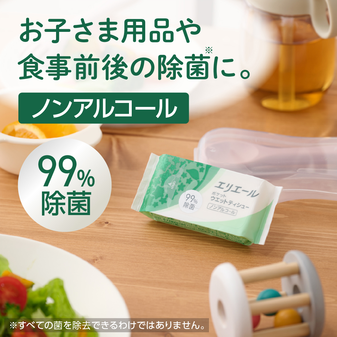 お子様用品や食事前後の除菌に。