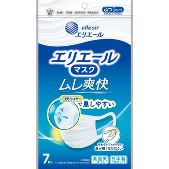 「elleair」マークがマスク本体の左下になる面を外側にして、着用してください。形状:プリーツタイプ(使いきりタイプ)