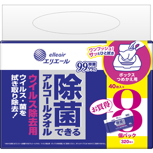 エリエール 除菌できるアルコールタオル ウイルス除去用 ボックスつめかえ用
