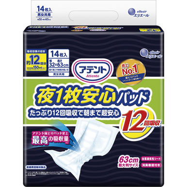 アテント 夜1枚安心パッド たっぷり12回吸収で朝まで超安心...