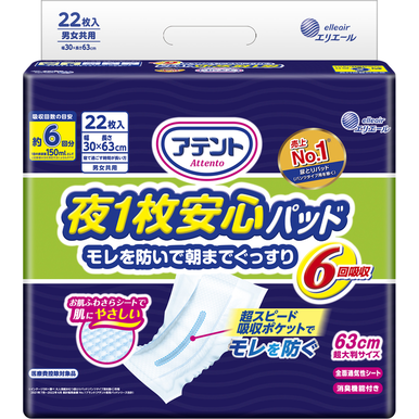アテント 夜1枚安心パッド モレを防いで朝までぐっすり 6回吸収