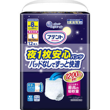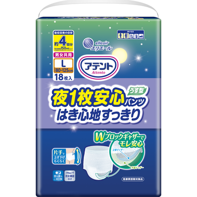 アテント 夜1枚安心パンツ 脚まわりロング丈 男女共用 L