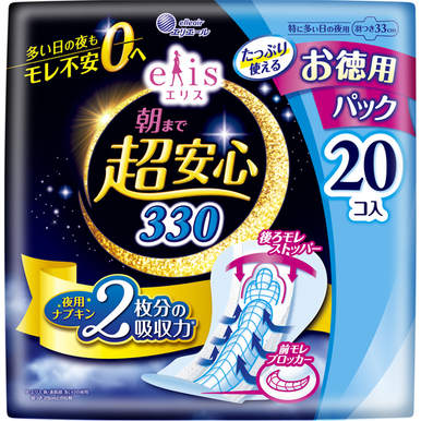エリス 朝まで超安心 330(特に多い日の夜用)羽つき 33cm