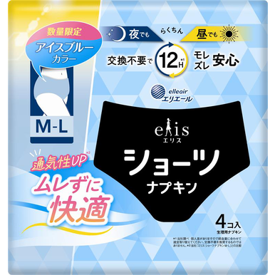 エリスショーツ M~L 昼・夜 ⾧時間用 アイスブルーカラー4枚