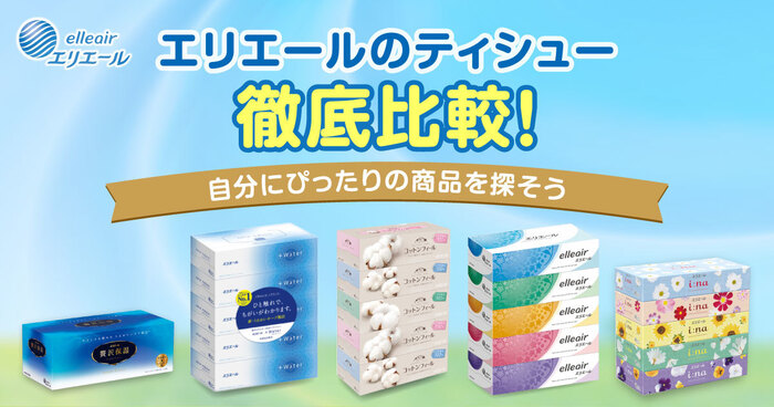 この記事では、エリエールのティシュー5商品をピックアップし、それぞれの特長と違いを比較してご紹介します。