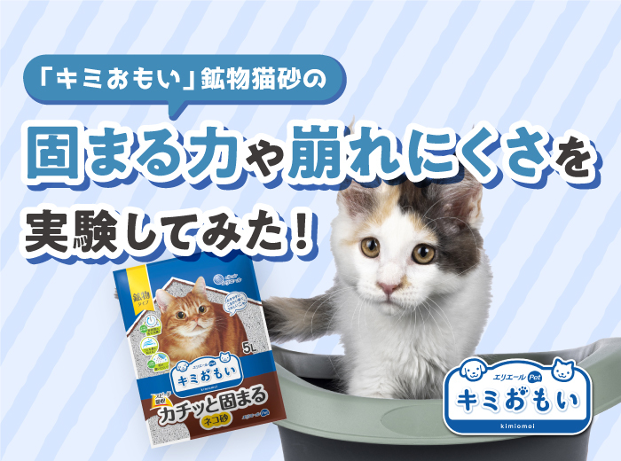 「キミおもい」鉱物猫砂の固まる力や崩れにくさを実験